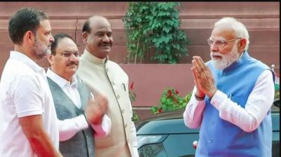 नई दिल्ली। संसद परिसर में शनिवार को ऐसा नजारा देखने को मिला, जिसने सभी का ध्यान अपनी ओर खींचा। प्रधानमंत्री नरेंद्र मोदी और लोकसभा में विपक्ष के नेता राहुल गांधी...