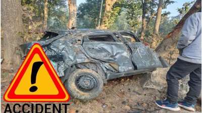 सड़क हादसा: तेज रफ्तार कार अनियंत्रित होकर 25 फीट नीचे खाई गिरी, दो की मौत