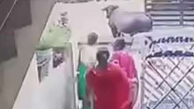 सड़क से घर तक पहुंची सांड़ों की जंग, गेट पर खड़ी महिलाओं को छूकर निकल गए