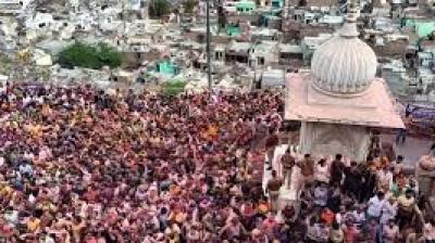 बरसाना में श्रद्धालुओं पर लड्डुओं की वर्षा, उत्सव का भव्य दृश्य