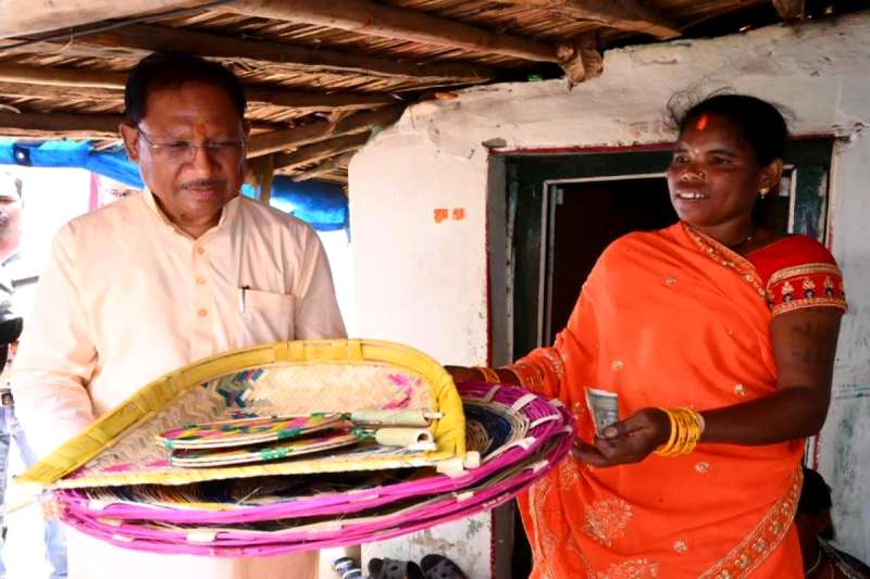 सीएम साय ने परिवार में शादी के लिए तत्काल खरीदा दो पर्रा, दो ढुकना और एक सूपा- सरकारी योजनाओं का फीडबैक लेने लौदाबाजार-भाटापारा जिले पहुंचे सीएम