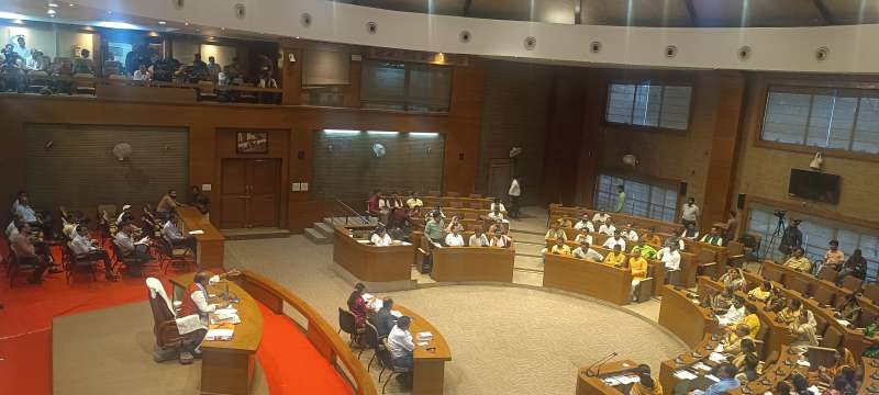 बैठक में निर्दलीय पार्षद विलासराव घाड़गे ने नगर निगम आयुक्त हरेंद्र नारायण के खिलाफ निंदा प्रस्ताव लाने की मांग की. उनका आरोप था कि आयुक्त की कार्यप्रणाली ठीक नहीं है. इसके बाद वो निंदा प्रस्ताव की मांग करते हुए आसंदी के सामने जमीन पर बैठ गए. हालांकि, आयुक्त का बचाव करते हुए एमआइसी मेंबर जगदीश यादव ने कहा कि नगर निगम आयुक्त की वजह से भोपाल इस बार स्वच्छ सर्वेक्षण में दूसरे नंबर पर आया है.