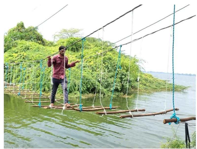 बड़वानी से 5 किलोमीटर दूर राजघाट के निकट बसे कुकरा गांव में फिलहाल 4-5 परिवारों के करीब 25 लोग रहते हैं। ग्रामीणों ने पिछले चार से पांच दिनों तक मेहनत कर रस्सियों, लकड़ी और टिन शेड की मदद से यह पुल तैयार किया। दोनों ओर पुल को मज़बूत पेड़ों से बांधा गया है। नीचे लकड़ी का मचान बनाया गया है और ऊपर लोहे की टिन चादर लगाई गई है। इससे पैदल पार करने में आसानी हो सके।