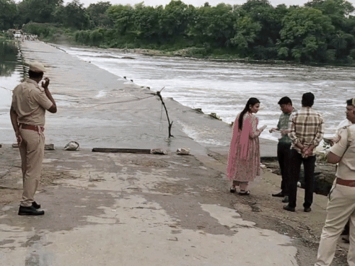 संतुलन बिगड़ते ही पानी में समा गई बाइक