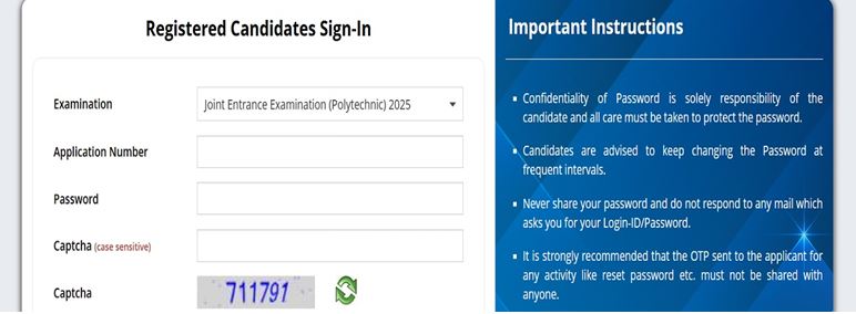 - अब एप्लीकेशन नंबर, पासवर्ड एवं दिया गया कैप्चा कोड दर्ज करके साइन इन करें।